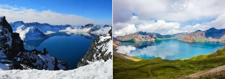이러한 지형적 특징으로 인해 백두산 여행 코스에 따라 '천지(天池)' 경관과 다양한 명소, 날씨 차이를 경험할 수 있습니다.